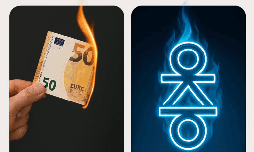 Dans le système traditionnel, si tu prends un billet de 50 € et que tu le mets au feu, félicitations : tu viens de commettre un acte répréhensible par la loi.
